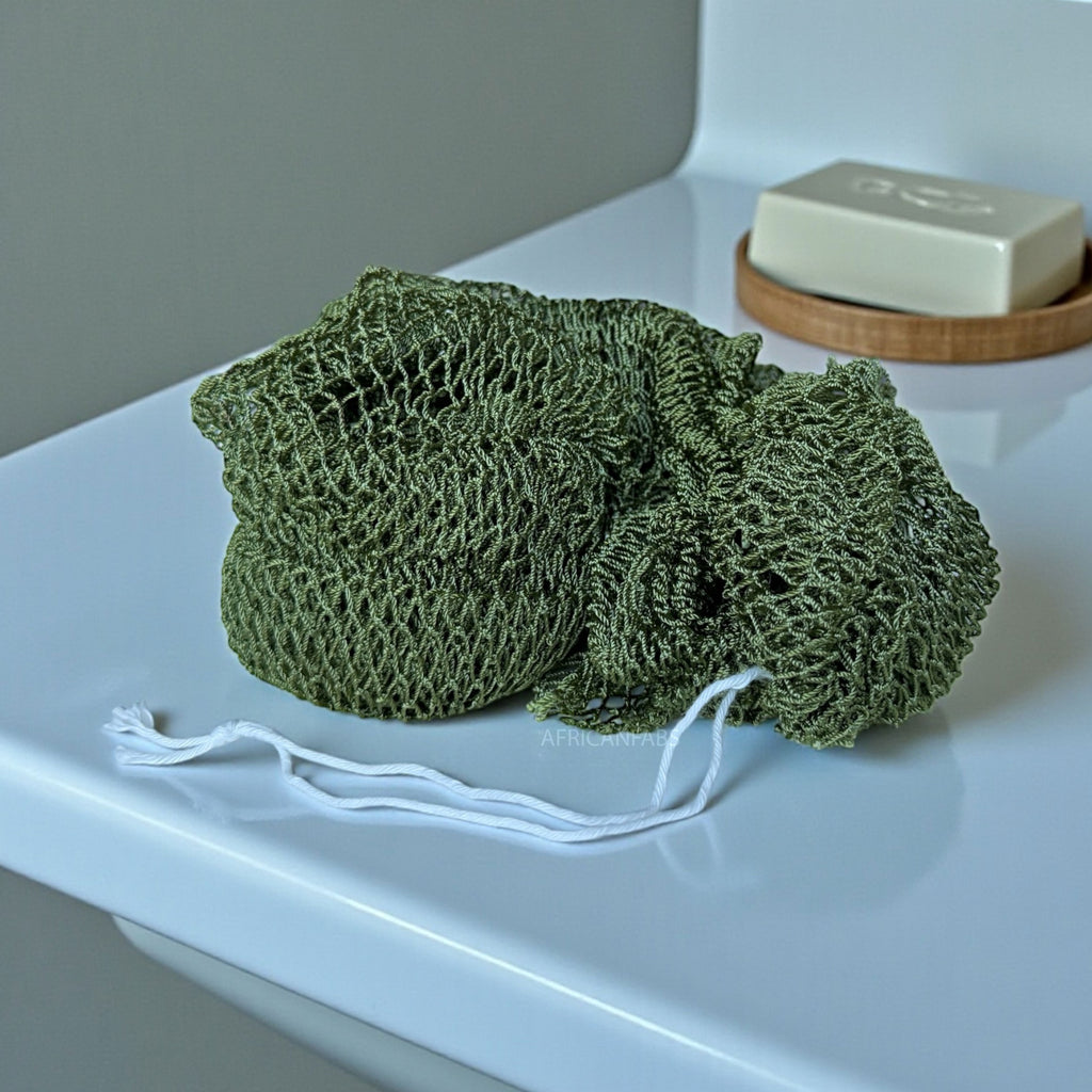 Afrikaanse spons / net sponge - traditionele SAPO spons / scrub spons - Legergroen