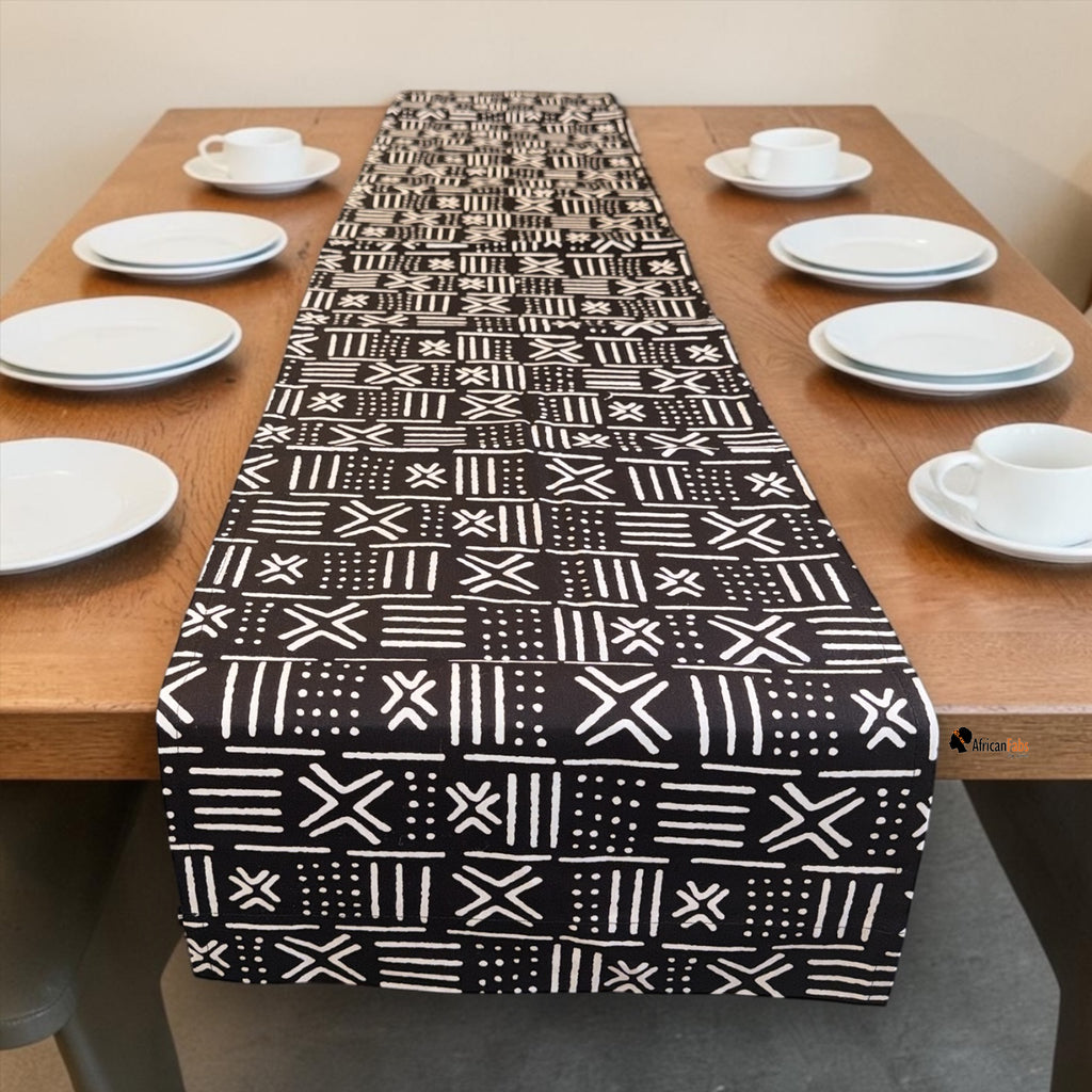 Afrikaanse print tafelloper - Tafelkleed - Zwart Wit X Bogolan