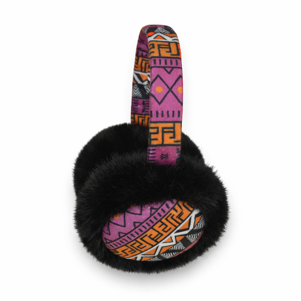 Afrikaanse Print Oorwarmers / Earmuffs - Inklapbaar Wintermodel - Roze Oranje Tribal