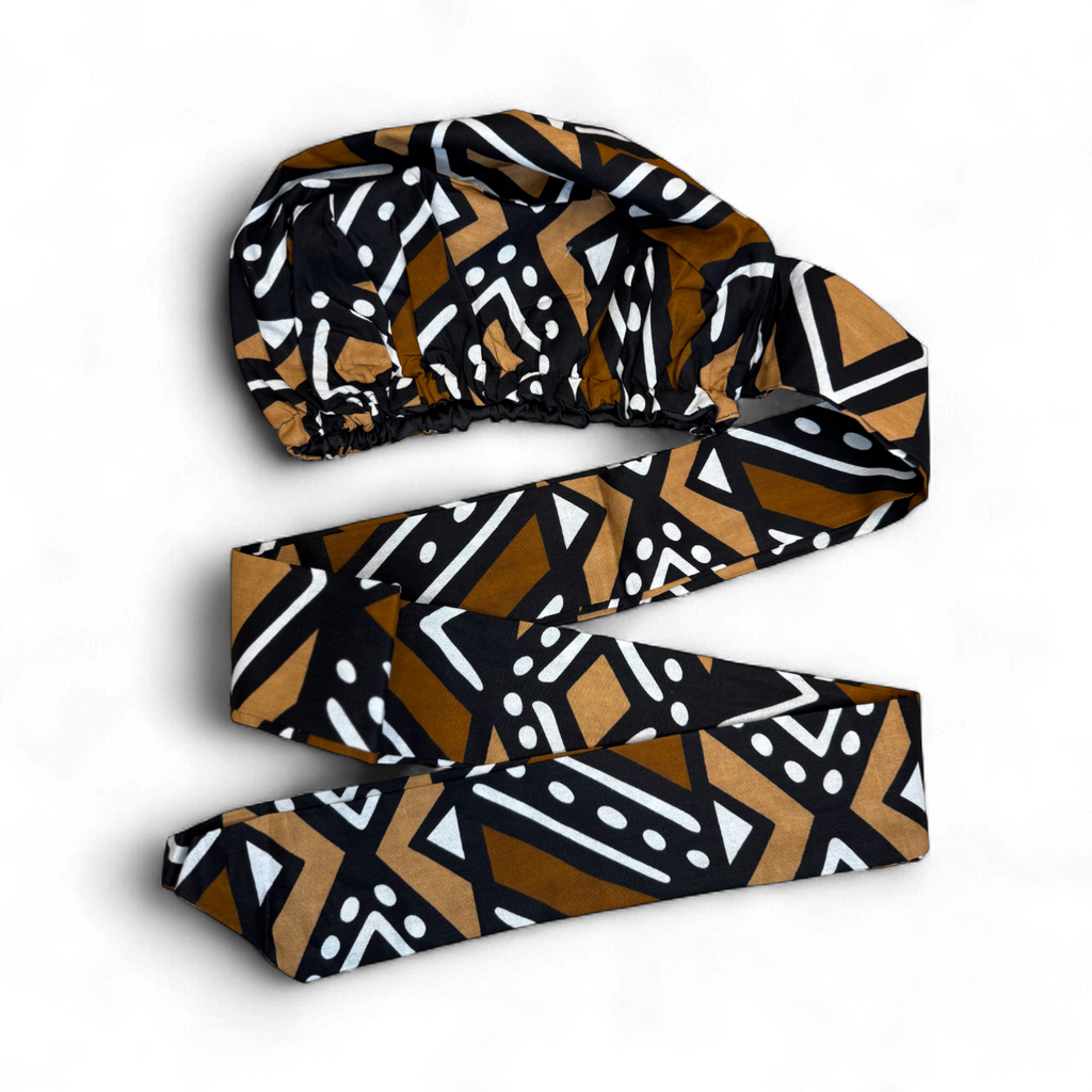 Easy headwrap / hoofddoek - Bruin & Beige Bogolan