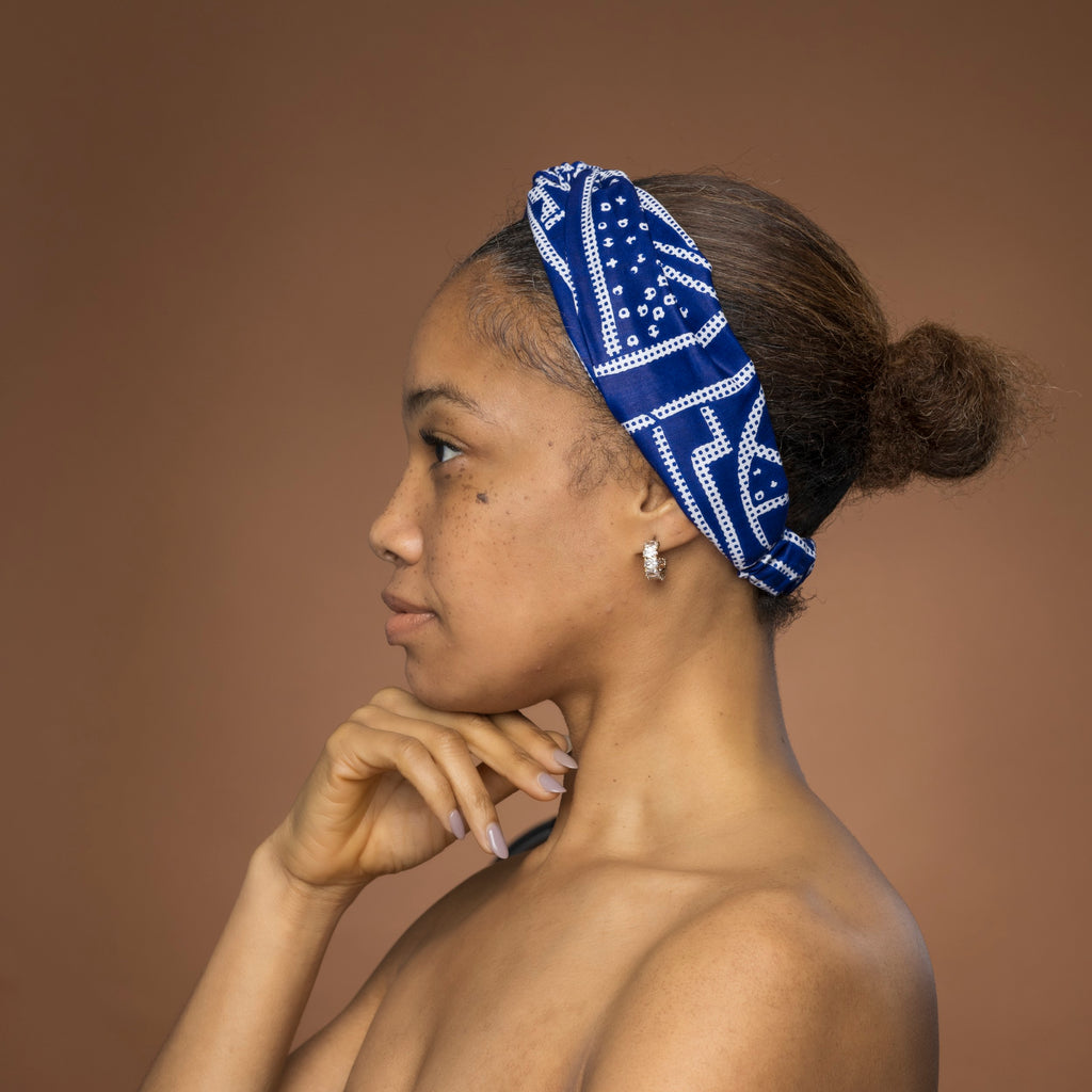 Haarband / Hoofdband in Afrikaanse print - Blauw Wit Ndop Cameroon