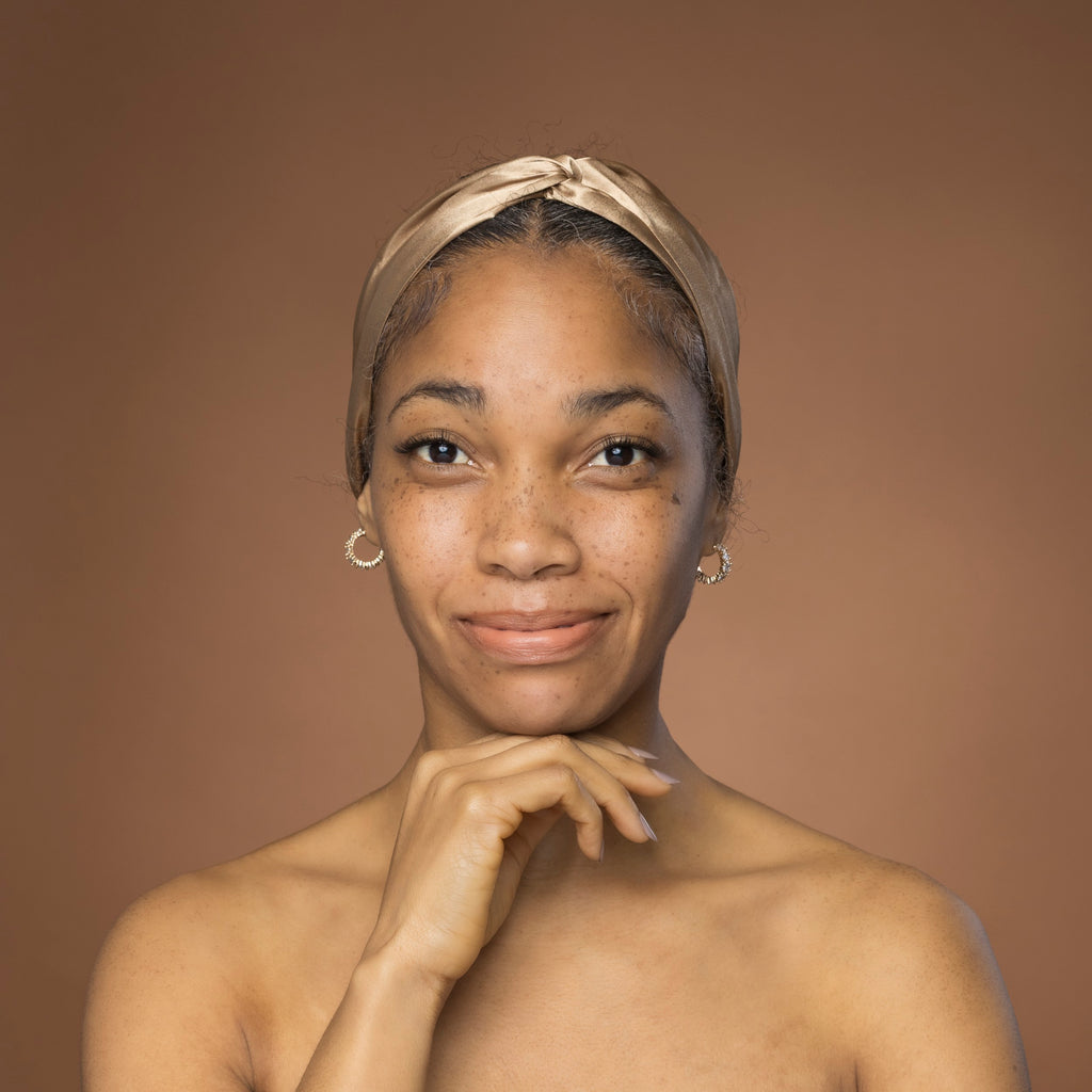 De haarband is verkrijgbaar in twee maten, zodat je de pasvorm kunt kiezen die het beste bij jou past. De grotere maat is ook ideaal als je de haarband deels over je haar wilt dragen.