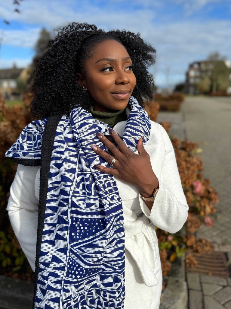 Warme Afrikaanse print sjaal Unisex - Smal model - Blauw Ndop Kameroen