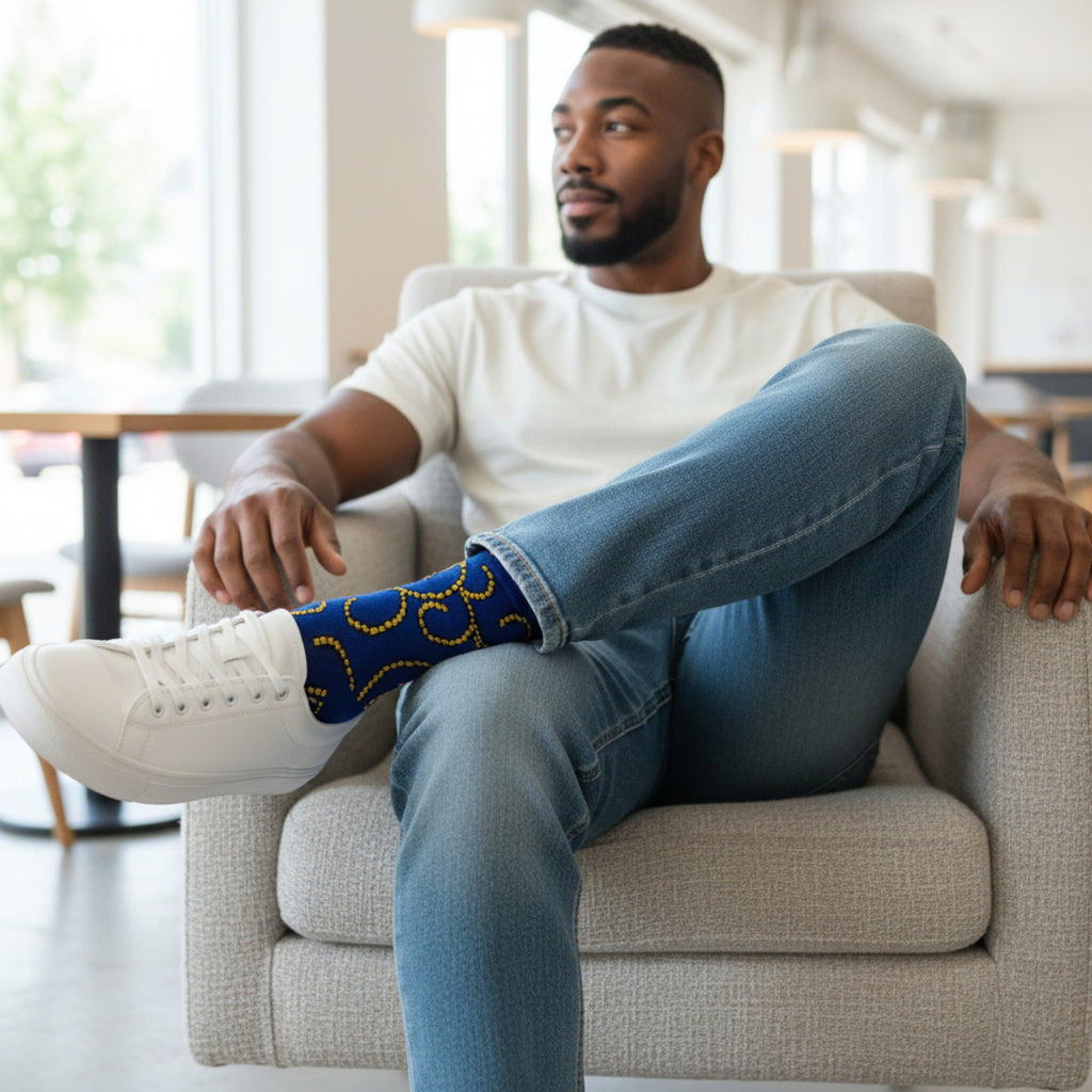 Afrikaanse sokken / Afro sokken / Mud print - Set van 3 paar - Blauw KWABENA