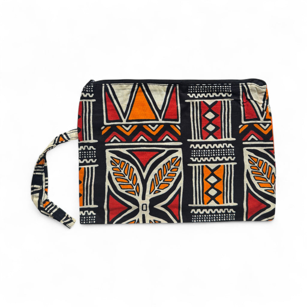 Afrikaanse wax print Make-up tasje / handtasje / etui / potloden mapje / pennentasje - Rood & Oranje Bogolan Symbolen